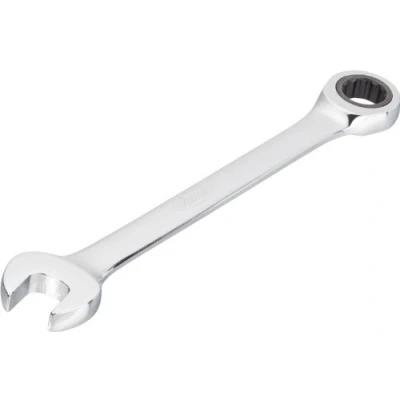 Ratcheting Combination Wrenches In Long Style With The Size Of 16 mm Designed And Tested To Reach Studs In Difficult Work Areas Heat Treated For The Correct Balance Of Strength And Hardness Combination Wrench Made Of Polished Chrome-Plated Chromium Vanadium Steel