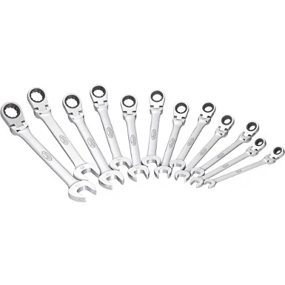 Set Contents 12 Pieces Of Ratcheting Combination Wrench 180° With The Size Of 8 · 9 · 10 · 11 · 12 · 13 · 14 · 15 · 16 · 17 · 18 · 19 mm Designed And Tested To Reach Studs In Difficult Work Areas Heat Treated For The Correct Balance Of Strength And Hardness Combination Wrench Made Of Polished Chrome-Plated Chromium Vanadium Steel