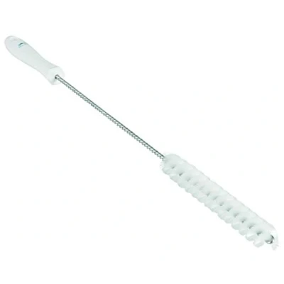 This tube brush is the smallest diameter of the tube brushes. It is used to clean small pipes and very narrow spaces between machine parts The bristles are attached to a twisted stainless steel shaft, making it strong and chemically resistant Helically wound, stainless steel shaft Used to clean small pipes and very narrow spaces between machine parts Polyester bristles; Made from FDA compliant materials