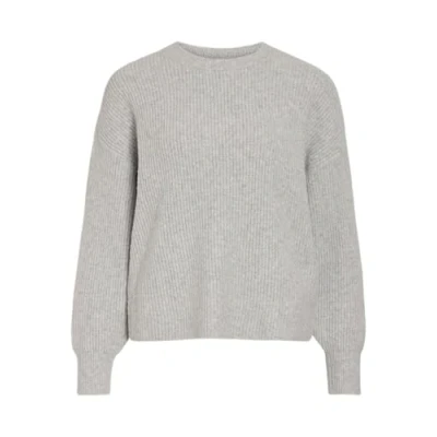 Vila Female Knitted Crew Neck Jumper, Light Grey Mix, L