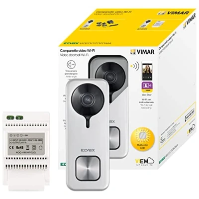 Instructions and tutorials at faidate.vimar.com 4Mpx video image resolution, wide viewing angle (160° degree) and recording images and videos to SD card (8GB included) Powered by external power supply (not battery); Presence of two opening controls for gate lock and gate automation Response via smartphone, even remotely, and motion detection with notification on app Compatible with Amazon Alexa voice assistants