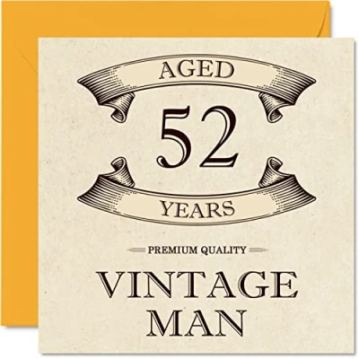 Vintage 52nd Birthday Cards for Men Aged 52 Years Fun Card Colleague Dad Husband Boyfriend Uncle Brother Friend, 145mm x Greeting Cards,