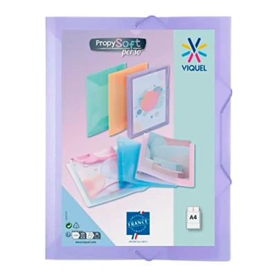 Viquel A4 Plastic Folder with Flap and Elastic Closure Customisable Propysoft Made in France Pastel Purple
