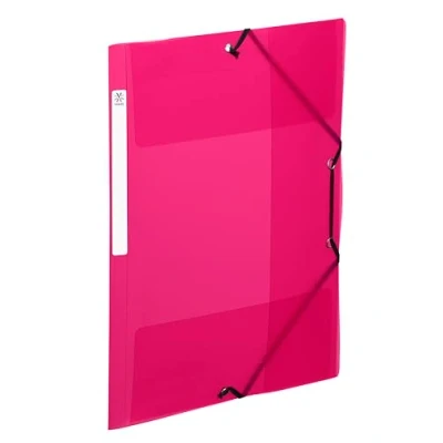 Viquel A4 Plastic folders with Flaps and ID Label on The Side Transparent Pockets Elastic Closure Document Storage Translucent Raspberry red