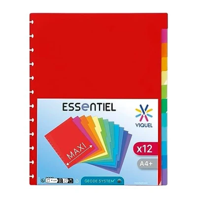Maximum size: these A4+ dividers are designed for A4 maxi binders. They can therefore be used with punched pockets without the tab being covered. Your index is always readable. Size: 24.5 x 31 cm. Geode perforation: These dividers have a specific perforation for Geode file folders. The holes are different and do not fit standard binders. Resistance: These dividers are made of 4/10 polypropylene and will last over time. Authentic: This product is manufactured by Viquel, specialist in office supplies.