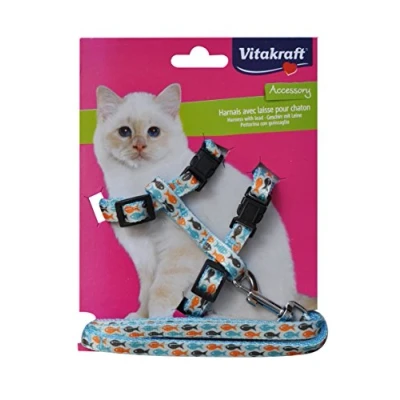 Harness + Leash for Kittens 2 clasps for easy handling For a comfortable fit Safety thanks to hanging lead Vitakraft is without question the leader in nutrition, awards, treats, hygiene, care and accessories for pets thanks to a philosophy based on the love of nature and animals. Variety, quality and innovation characterise our products for all pets: dogs, cats, rodents, birds, fish.