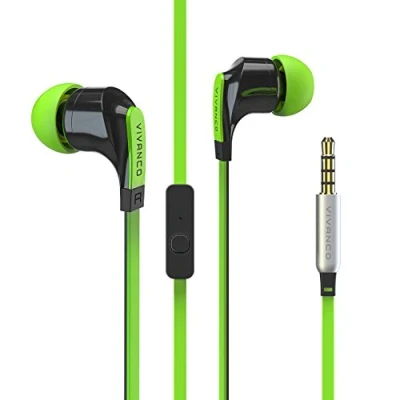 Green Colour Flat Anti-Tangle Cable In-Line Microphone & Call Control Headphone Type: In Ear Design
