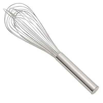 Efficient beating: 12 robust, lightweight wires make beating and stirring ingredients quick and easy, saving time in your kitchen. Seamless handle: hygienic design with a seamless handle for easy cleaning and comfort during prolonged use. Durable construction: Made of durable stainless steel for long-lasting performance and strength. Prevents liquid entry: plastic seal at the base of the wires helps prevent liquid entry into the sockets and ensures durability. Ideal for large quantities: perfect for bakeries and restaurants, able to handle large amounts of ingredients effortlessly.