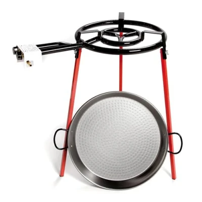 Prepare delicious paellas outdoors with this 18" paella pan, [easy to use] and [perfect for group meals]. (Burner and tripod included) [Paella Pan 46 cm] with [burner + tripod], perfect for [outdoor paella] (great for groups). [Easy to Use] and [Carry]. 18" Paella Pan with Burner and Tripod, [Easy to Use] and [Simple to Install], Perfect for Enjoying [Group Meals] Outdoors [18" Paella Pan] with Burner and Tripod, [Ideal for Outdoor] [Quality] and [Safety]: [Sturdy Material] (Durable and Safe). 5. RECOMMENDED APPLICATIONS OR USES - Ideal for [outdoor kitchens] and [family gatherings] (46cm). Prepare paellas and enjoy in a group with [easy handling], [portability].