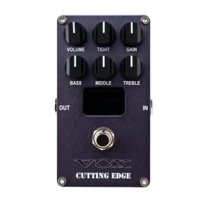 The VOX VALVENERGY series offer four distinctive sounding effects pedals that put the sounds of classic valve amps amd the response and harmonic distortion of a tube amp into a foot pedal Each pedal uses Nutube (Vacuum fluorescent display technology) which works like a conventional vacuum tube but is smaller and more reliable but delivers the same rich overtones and sense of power of a vacuum tube amp The CUTTING EDGE pedal delivers the high gain sound indespensable for modern metal. Tight crunchy tones for clear riffing all the way through to thick sounds perfect for leads Controls: GAIN, VOLUME, TREBLE, MIDDLE, BASS plus a TIGHT knob which adjusts the low-frequency range before it is distorted letting you change the character of distortion Each pedal is equipped with a high-contrast OLED display showing as an oscilloscope providing a visual image of how the waveform is affected by the knob settings