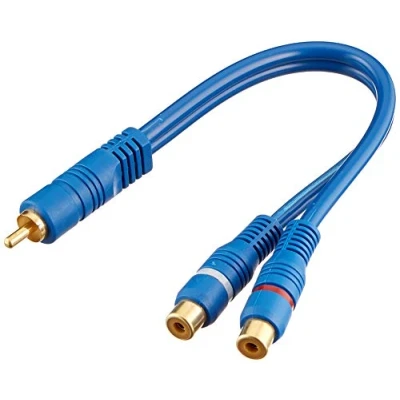 VSE 365106 RCA Y Splitter Cable 1 x Male 2 Female Double Shielding Blue