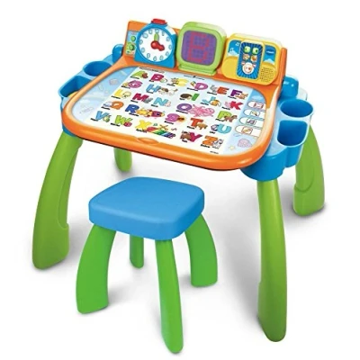 Writing, learning and painting table in one Learning: colors, shapes, letters, sounds, counting, science, creativity Creativity, language development, discovery and exploration, first writing skills, promoting auditory perception Package weight: 3.83 kg Pack size: 18.8 L x 58.6 H x 41.4 W (cm), Manufacturer: VTech