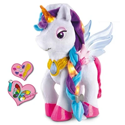 Interactive unicorn for learning makeup that expresses your emotions, sing and changing colour with makeup. Includes 6 sets (magic mixer, against the clock, party starter, smile), lights and music. Mila's eyes and neck move during the different stages of the game for better interaction, plus the wings and eyes also change colour and glow Use the magic brush to choose a colour of the palette and press on the horn to see how it is transferred to this makeup, as well as on the mane of the unicorn. Show colours and stimulate reaction speed with your games The batteries are for demonstration, it is recommended to use special alkaline batteries for technical products., Manufacturer: VTech