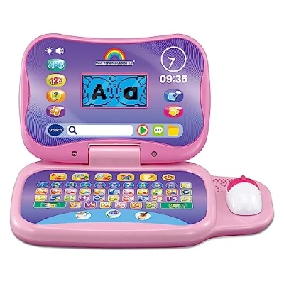 Age-appropriate learning laptop with illuminated LCD screen, colourful ABC keyboard, mouse and many buttons for activities 5 different game modes with 20 activities to discover numbers, shapes, vocabulary, logic, English words, animals, food and much more Personalization: Create your own character, select background and welcome music, and more choices Music and instruments: listen to different instruments and music styles Child-safe battery compartment, automatic switch-off and volume control, Manufacturer: Vtech