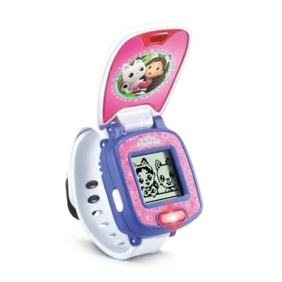 The French version of this children's watch with flap allows children from 3 years old to learn while having fun alongside the characters for-meow-dables from the animated series Gabby et la maison magie! 4 FAN-CHA-STIQUES GAMES to help Gabby, Pandy Paws and Fairy Minette collect popcorn in the right shape for their snack, make milkshakes with P'tichou, bring Marine's bathtub back into her bathroom, and count the shapes for Baby Box. The child chooses one of the 10 DIALS that are offered to customize his watch with his favorite character: Gabbycats (Gabby and Pandy Paws), Bébé Box, Fairy Minette, Chabriolette, DJ Meow, Marine, P'tichou, Polochat and Sacha. On this multifunctional watch, the child learns to set the time, put an alarm clock, an alarm, start a stopwatch, activate an hourglass and the cuckoo! WHAT YOU GET - This Gabby cat watch requires 1 x CR2450 button battery (included). Automatic toy shut-off., Manufacturer: VTech
