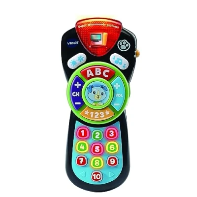 DOG SCOUT: Scout interacts with the child through the center button and accompanies them in learning numbers 1 to 10, alphabet and music IMITATES THE GREATS: Like a real remote control, each number corresponds to a channel: cartoons, cooking channel, sports… WEATHER - Scout Helper informs your child about the weather conditions of the day using the Weather button. LIGHT EFFECTS: The light effects and funny sounds of this kids remote control are for catching baby's attention MUSIC: Music button to activate cute melodies; there are over 100 fun songs, phrases, melodies and sounds, Manufacturer: V-Tech