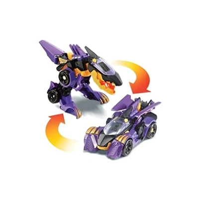 French version An interactive Spinosaurus to transform into a racing car! Two modes: Vehicle mode and Dino mode. Each mode triggers automatically when the transformation is performed LCD display with animations: driver for car mode and dino eyes for dinosaur mode Buttons to trigger phrases and sound effects. In Dino mode, the "Action" button allows the paws to move and open the jaw and activates a luminous effect in the mouth of the dino With realistic sounds, phrases related to the world of dinos and light effects, Manufacturer: VTech