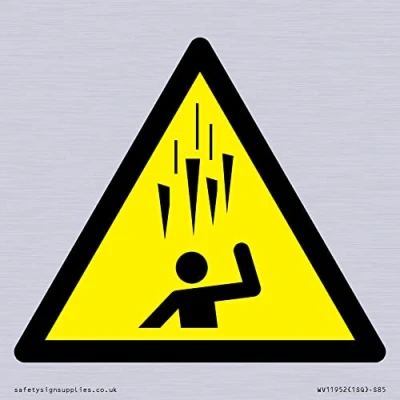 W039 : Falling ice This sign is made from plastic semi-rigid 1mm Comes with3mm Corner Holes. 1mm thin plastic sign, can be screwed, stuck with adhesive, or attached with cable ties. Not suitable for hanging. S85 square Sign Text: None