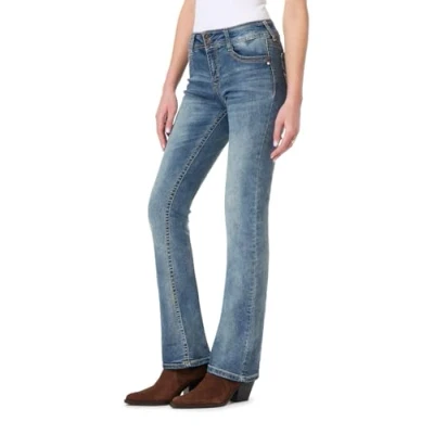 Mid-rise contour waistband prevents gapping so you can sit with us with this shape-sculpting fit. This jean hugs your curves Made with in St a stretch denim, our premium stretch denim offers outstanding recovery that hugs and sculpts all day Tight fit through the knee, faded legs, whiskered hips Features basic 5 pockets Regular=32, long=34, short=30 inseam. 20 leg opening - 12 front rise. WBM09485B is 5' 9 and wearing a size 5