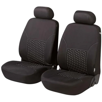 Universal fit: the car seat covers are suitable for all standard car models with and without side airbags. PACKAGE CONTENT The package includes 2 front seat covers and 2 headrest covers in the color black-grey. Optimal protection: the car seat covers protect your original seat optimally against dirt and wear. Tested safety: TÜV Rheinland tested for side airbag suitability Box contents: 2 front seat covers, 2 pieces, 2 headrest covers