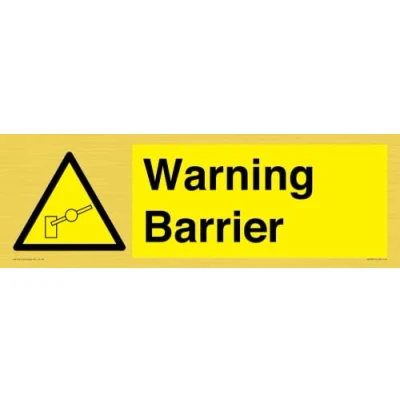 W902 : Barrier This sign is made from vinyl gold sticker Gold metal effect sticker for flat, clean surfaces. Not for rough, plastic, or dusty surfaces. 41 landscape Sign Text: Warning Barrier