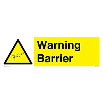 W902 : Barrier This sign is made from vinyl / sticker Air Release vinyl makes it easy to stick to flat, clean surfaces without bubbles. Not for rough, plastic or dusty surfaces. 62 landscape Sign Text: Warning Barrier