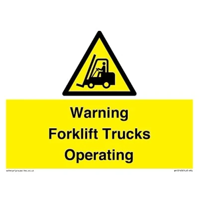 W014 : Forklift trucks and other industrial vehicles This sign is made from vinyl / sticker Air Release vinyl makes it easy to stick to flat, clean surfaces without bubbles. Not for rough, plastic or dusty surfaces. A5 landscape Sign Text: Warning Forklift Trucks Operating