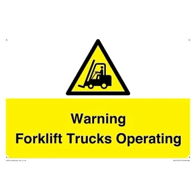 W014 : Forklift trucks and other industrial vehicles This sign is made from vinyl high tack A stickier sticker. Uses a stronger adhesive to make it more suitable for plastic surfaces like Wheelie Bins or where the sticker might get rubbed. A4 landscape Sign Text: Warning Forklift Trucks Operating