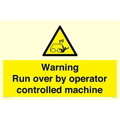 W037 : Run over by remote operator controlled machine This sign is made from vinyl photoluminescent sticker A2 landscape Sign Text: Warning run over by operator controlled machine