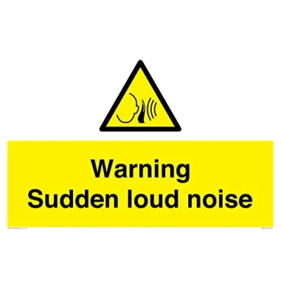 W038 : Sudden loud noise This sign is made from vinyl / sticker Air Release vinyl makes it easy to stick to flat, clean surfaces without bubbles. Not for rough, plastic or dusty surfaces. A2 landscape Sign Text: Warning Sudden loud noise