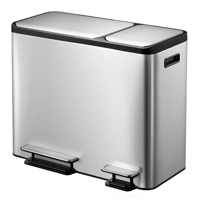 The EKO EcoCasa is a rectangular pedal bin made of stainless steel. It is finished with fingerprint proof coating. Handy plastic handles are attached to the sides and the trash can has a so-called 'stay-open' function. This makes it easy to change the bag and clean the trash can. The lid closes softly and it has two pedals. The waste bin contains three plastic inner buckets, each with a capacity of 15 litres. Thanks to these compartments you can easily separate your waste. The total capacity of this EKO garbage bin is 45 litres.