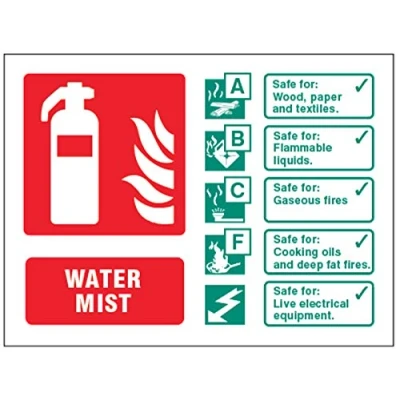 Water mist extinguisher identification Rigid PVC Sign with Self Adhesive Backing