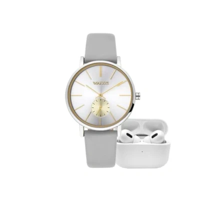 Watxandco Unisex Analog Watch Silver stainless steel round dial with quartz movement With mineral glass Grey leather strap Water resistant to 3 bars
