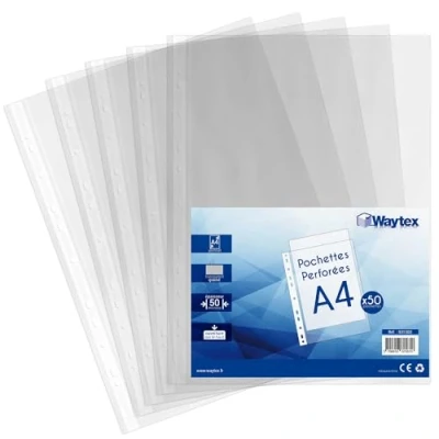 Waytex 931303 Punched Pockets A4 Clear Grained 50 Micron Pack of