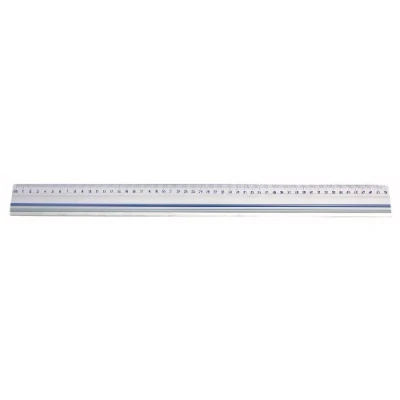 The robust aluminum ruler shows a scale of 50cm and is 4cm wide Back with integrated rubber lips as anti-slip protection Equipped with solid steel edge for cutting work The scale print is in easy-to-read, contrasting blue