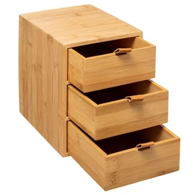 WELL HOME 3 Drawer Box Bamboo with Tab