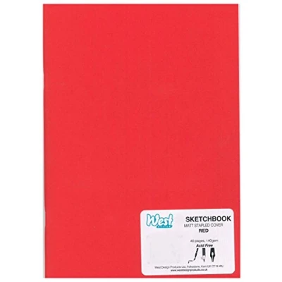 West Design A3 Sketchbook, 140gsm, 40 White Pages, Stapled Laminated Red Cover, Crisp, Acid Free Plain, Blank Paper, Sketch, Draw, Journal, Scrapbook, Drawing Pad, Notebook, Home, Art Supplies