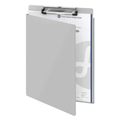 AmazonAluminium clipboard with protective cover, DIN A4 spring clip with plastic corners for a steady grip with hook, practical and robust With pull-out suspension eye, practical for storage or as a note holder on the wall Practical, robust and versatile. Especially in the office, in surveys, during studies or in the doctor's practice.