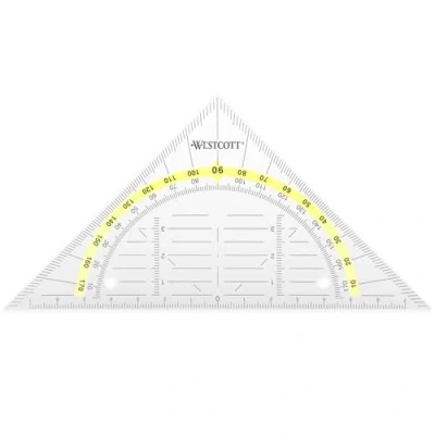 Geometric triangle is made of transparent plastic Measurements available in centimetres and angles Scale with a total length of 14 cm at the hypotenuse With practical holes for filing in folders or folders Ideal for use at school, training, study or work