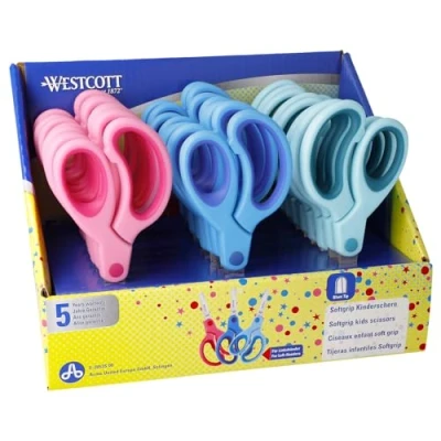 Ergonomic soft grip comfort handle - The specially developed soft grip provides small hands with a secure and comfortable grip, so that cutting is effortless and comfortable. The display box contains 16 right-handed and 8 left-handed scissors. Rounded tip - The rounded tip of the scissors ensures maximum safety and protects against injury, making it ideal for children's first cutting attempts. Compact size - With a length of 13 cm (5 inches), the scissors are perfectly adapted to the size of children's hands and facilitate precise cutting. Suitable for children over 4 years - These children's scissors have been specially designed for preschool children aged 4 and up, so they learn to cut safely and easily. Quality since 1872 - The Westcott brand has stood for household and office products with distinctive design and unparalleled value for money for over 140 years.