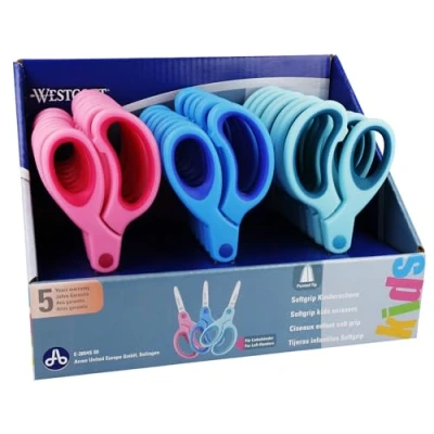 Westcott E 2054S 00 Display with 24 Softgrip Children's Scissors Pointed Tip 13 cm Assorted Colours