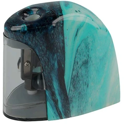 Westcott Electric Pouring Art and Marble Effect Pencil Sharpener with Container Battery Operated Can E 55060 Blue