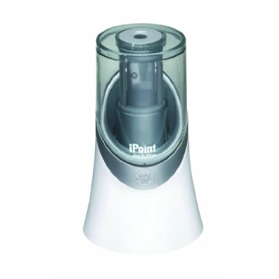 Westcott evo iPoint pencil sharpener Battery operated sharpener with auto start, perspex shavings reservoir Titanium bonded blades that stay sharper for longer Available in white colour Batteries not included