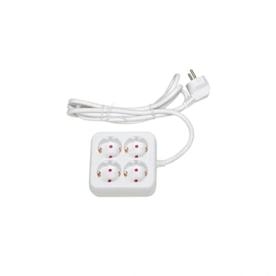White 4 Outlet Square Power Strip without Switch Cable 1.5 m