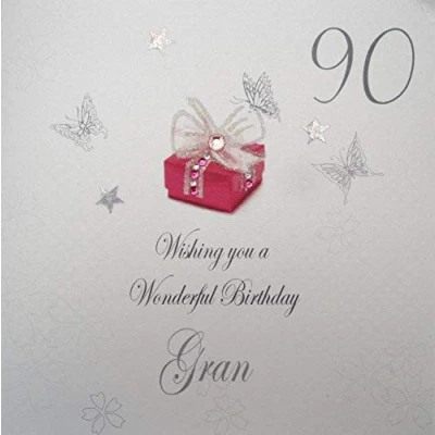white cotton cards 90 Wishing you a Wonderful Gran Handmade 90th Birthday Card, White, bdp90