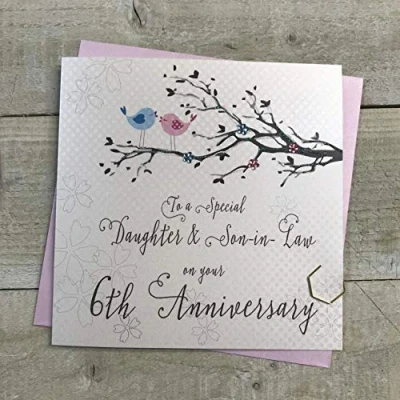 White Cotton Cards Daughter & Son in Law 6th Wedding Anniversary Card Six Iron Birds and Tree branch PD193 6,16cm x 16cm