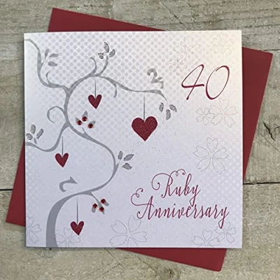 white cotton cards Ruby Wedding, Handmade 40th Card (Anniversary Tree, Code AB40)