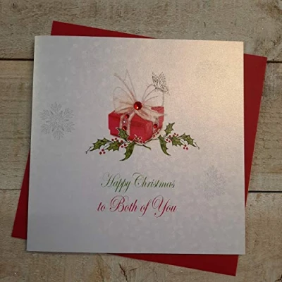 White cotton cards X127 To Both of You Handmade Christmas Card with Present Design,