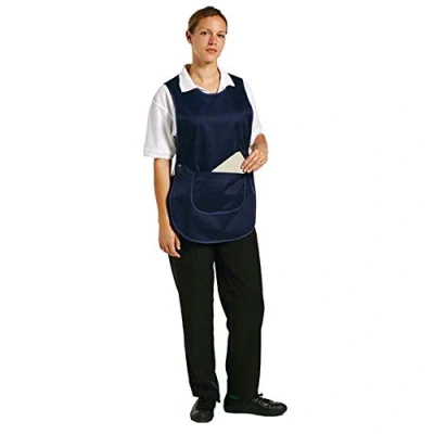 Pocket Size: 250mm x 250mm Adjustable popper side fastenings Great for use as a cleaning tabard, salon tunic or medical tabard Material: Polycotton Colour: Navy Blue