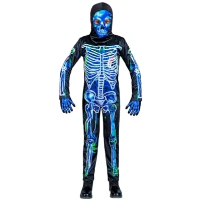 Mit diesem Kostm Set verwandelt sich Ihr Sohn in ein blaues, verseuchtes Skelett The costume for children is available in size 128 cm Diese Gre ist fr Kinder zwischen 5 und 7 Jahren geeignet Included is the black jumpsuit and the mask with hood Die intensive blaue Farbgebung des Skeletts verleiht diesem Kostm eine besonders verstrahlte Wirkung und macht es zum Blickfang auf jeder Halloween Party, Manufacturer: Widmann